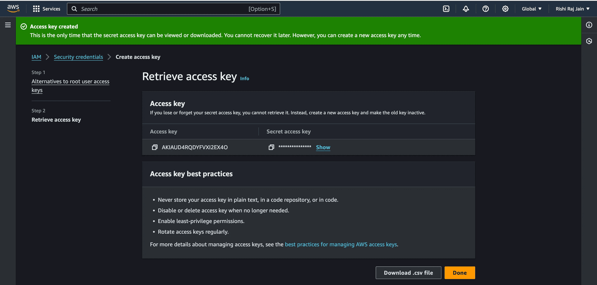 Again, click on Create access key.